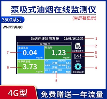 泵吸式油煙在線監(jiān)測儀SN-3500-LB能夠?qū)Σ蛷N排煙管道的油煙濃度、顆粒物濃度、非甲烷總烴(NMHC)濃度進(jìn)行24小時(shí)不間斷測量,并上傳我司免費(fèi)的監(jiān)控平臺(tái)或政府監(jiān)控平臺(tái)。
