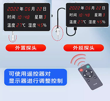 ▇采用大尺寸面板,紅光高亮數(shù)碼管,白天黑夜乃至強光下都可清晰顯示。萬年歷款可視距離>15m ,溫濕度款可視距離>35m。