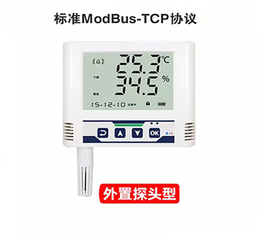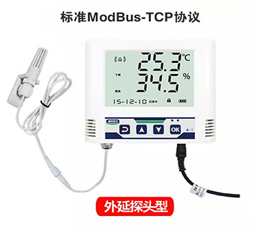 它將采集的溫濕度數(shù)據(jù)通過(guò)ModBus-TCP方式,即已架設(shè)好的以太網(wǎng)通訊網(wǎng)絡(luò),遠(yuǎn)距離傳輸?shù)椒?wù)器,實(shí)現(xiàn)溫濕度數(shù)據(jù)的集中監(jiān)控。