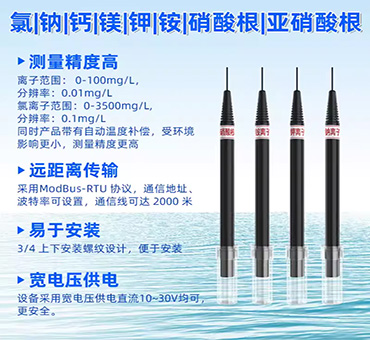 離子測(cè)量范圍為0-100mg/L,分辨率0.01mg/L,氯離子測(cè)量范圍為0-3500mg/L,分辨率為0. 1mg/L。